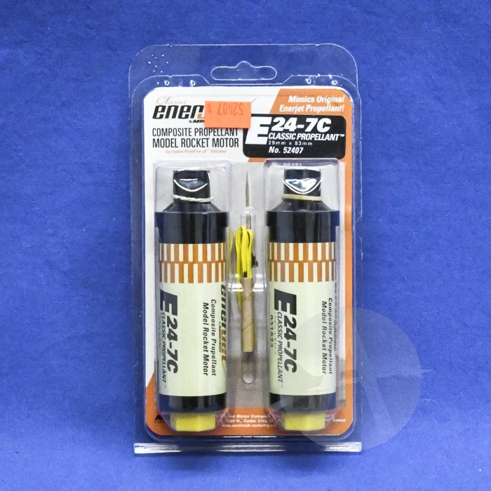 The E24C rocket motor is a true “Blast From the Past” as it mimics the look, sound and performance of the original Enerjet Propellant. The motor has a translucent exhaust plume studded with supersonic shock diamonds and no smoke, which appears to make your rocket leap off the launch pad.Â