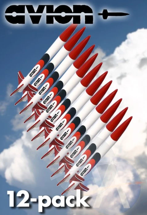 A classroom pack of 12 Avion rocket kits, which is a great ‘First Rocket” and perfect for educational groups! Your students will love this first introduction in model rocketry.
