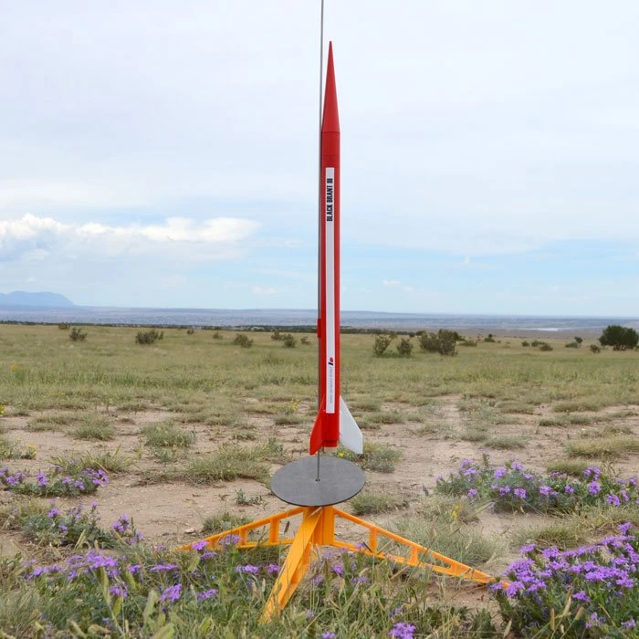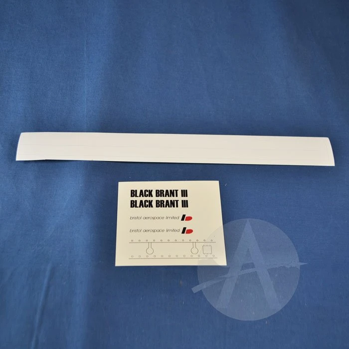 The real Black Brant III is a Canadian sounding rocket designed to launch small payloads of up to 39 pounds to around 72 miles high into the atmosphere. This single-stage scale kit is about 21.8 inches tall and features a 3D printed nose cone, laser-cut basswood fins, water-slide self-adhesive decals, and quick-change engine hook.