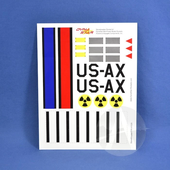 The StoneBreaker is a popular mid-power kit that flies on C through F size rocket engines. It is easy to build, and comes with great graphics to give it a lot of eye-appeal. The highly illustrated instructions make it an easy build too.