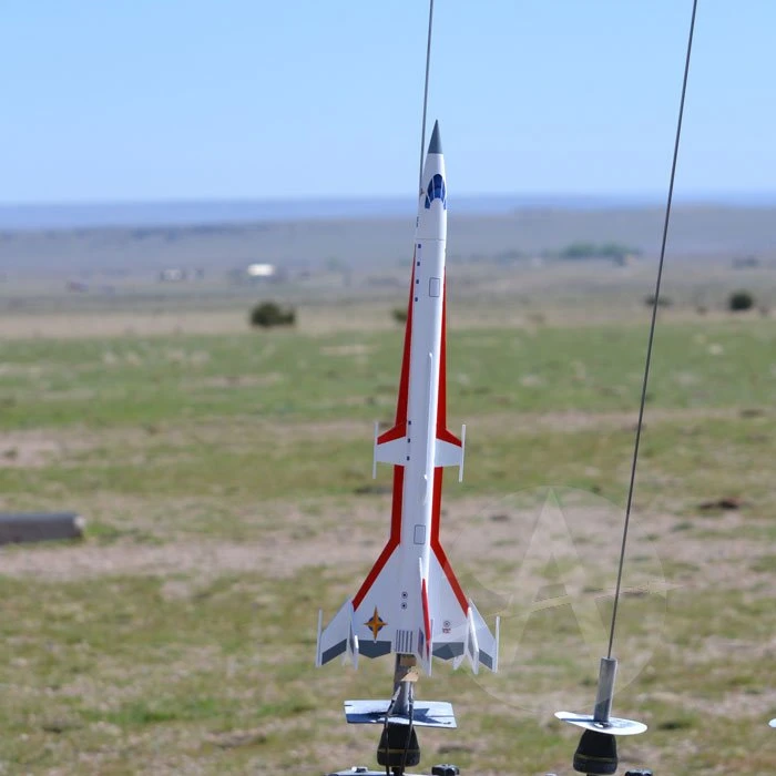 The Johnny Star Commander model rocket is a sleek rocket with a futuristic look to it. The rocket is built around a 1.325 inch diameter tube so it has a nice size that is easy to see in a crowded launch range. Features through the wall fins, vinyl decals, laser cut fins and a through-the-wall body tube.