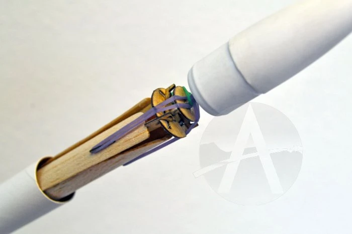 The Mini-Copter is the next evolution in competition helicopters using the 13mm diameter Mini-Motors. Lightweight in design, it features internal rotor blades for maximum boost altitudes. These blades eject out of the body and spin rapidly for super-long duration flights.
