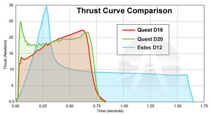 The Quest D20-6 is a great all-around motor for your typical rockets. It is particularly suited for heavier or larger diameter rockets. It features composite propellant, which has twice the energy as a black powder motor. Same size and diameter as an Estes motor, so it fits all your favorite rockets. But this is for single-stage rockets only, as it cannot be staged.